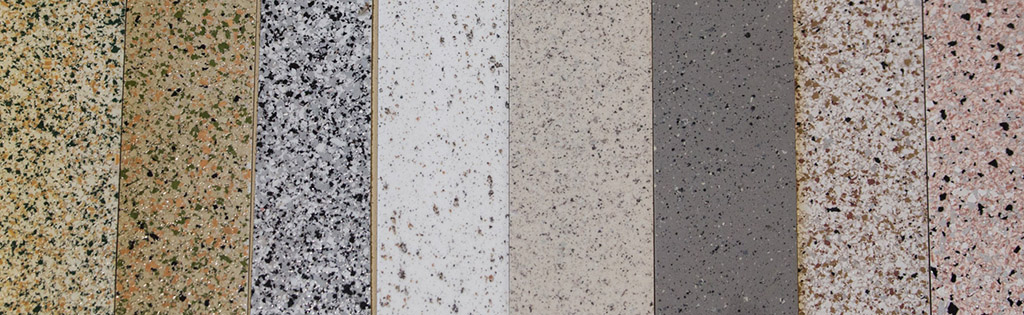 Confeti en material vinílico utilizado para decorar sistemas de pavimentos o superficies en general de forma duradera. Están específicamente formulados para absorber la capa base y la capa protectora utilizada para sellarlos con el fin de reproducir el típico efecto piedra tanto al tacto como a la vista. Están disponibles en dieciséis combinaciones de colores diferentes, para reproducir el aspecto de las superficies de granito o arena más comunes.